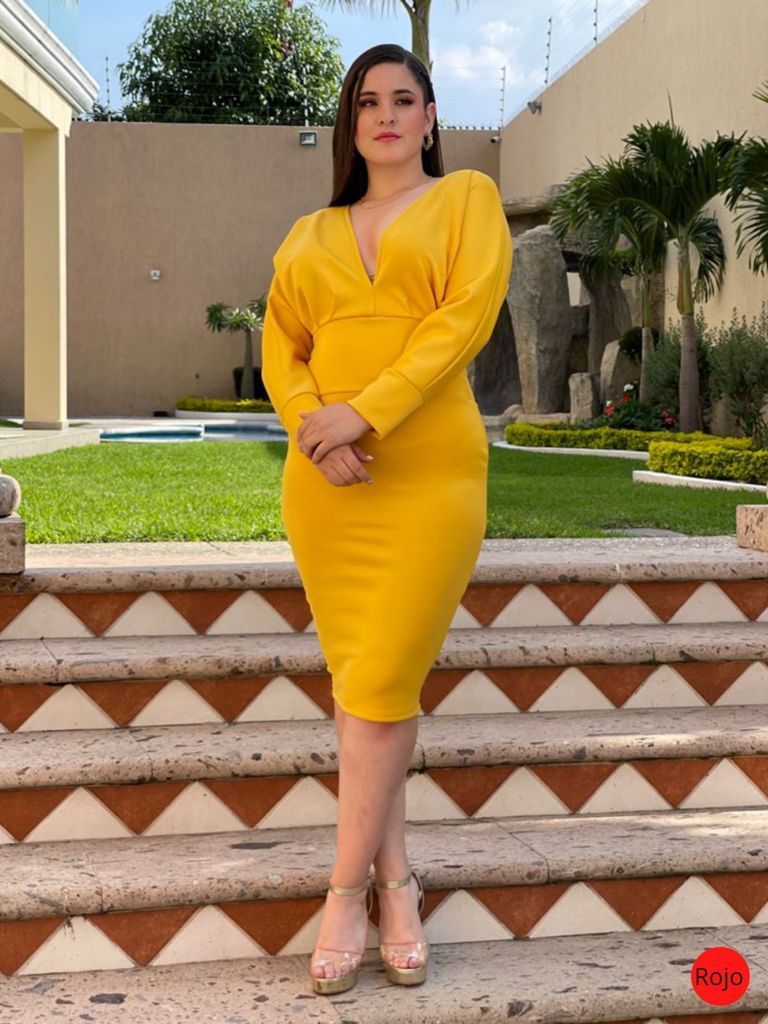 vestido cocktail curvy un solo color abarca talla G mangas de mariposa